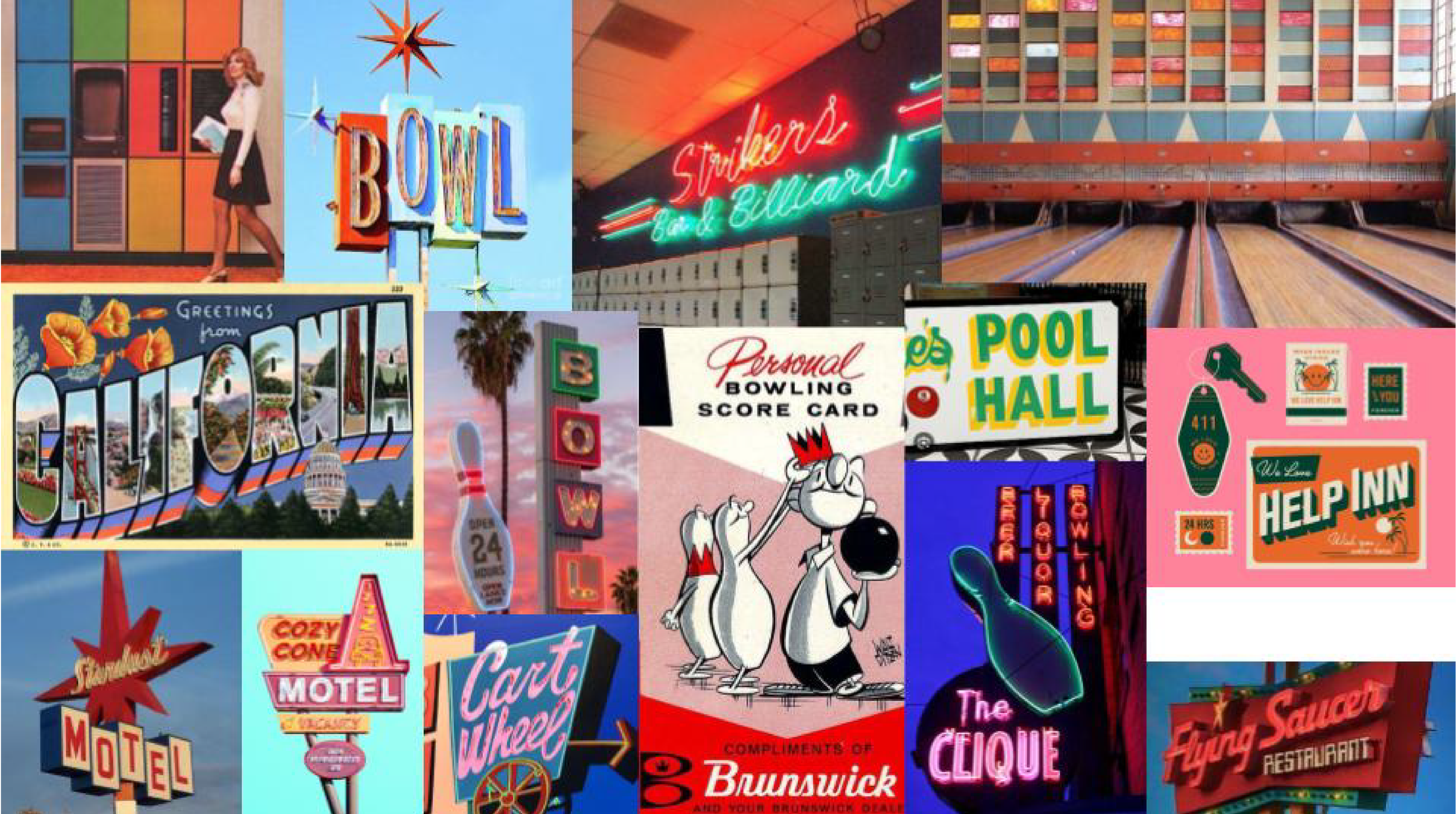 Heyday is a vintage store located in Evanston that carries a multitude of vintage clothing and homeware from a group of individual vendors. The prompt that was given to me was old school bowling alley along with some images for inspiration.
